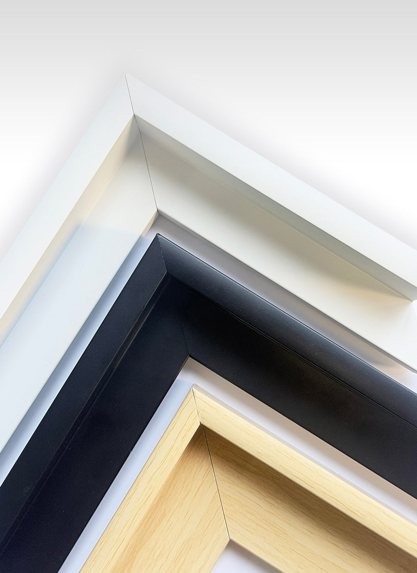 Slike dodatno uramljujemo u BOX plutajući ram koji je svetski standard za uramljivanje slika na platnu. BOX Ram ima moderne ravne linije i sveden dizajn pa je pogodan za sve prostore i u ponudi imamo četiri boje a to su crna, bela, natur i zlatna.